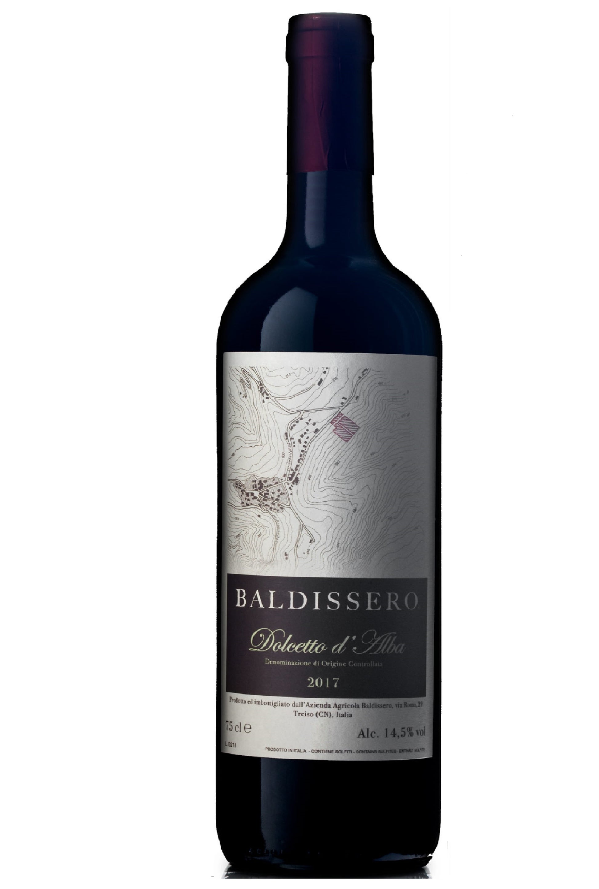 Made from 100% Dolcetto, and from 65 year old vines planted in the calcareous-clay soils on the lower parts of the vineyards by the winemakers grandfather. Refined in steel tanks for 6-8 months and bottled in the spring after harvest. The colour is deep purple and the wine has excellent texture with salty and spicy aromas of blackberry, black cherry and cinnamon spice . On the palette black cherry, liquorice and a hint of prune and almond in the finish. The wine is on the medium to lighter side and pairs well with pizza, pasta and lighter meat dishes and cheese.